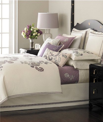 Modern romance. A bed of embroidered blooms, Bellport Garden by Martha Stewart Collection features layers of soft cotton bedding with intricate detail, luxurious quilting and tranquil shades of lavender and cream for truly graceful living.