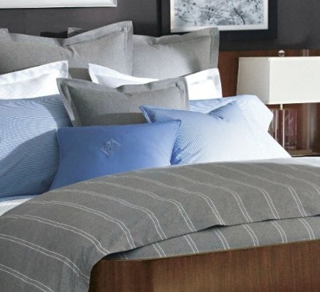 A dapper menswear-inspired collection showcases classic shirting stripes,crisp matelasse, fannel chalk stripes and a deco-monogram throw pillow for the ultimate in gentlemanly style.
