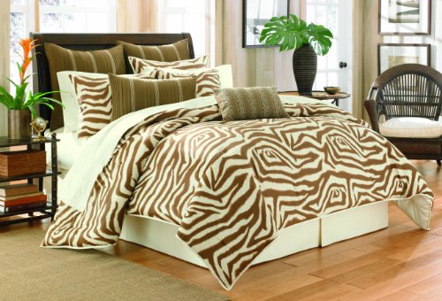 Tommy Bahama Arthur's Town Collection, features a zebra print. The comforter set features a comforter, 2 shams and bedskirt. Complete the bedding ensemble with the coordinating European Shams and Decorative Pillows.