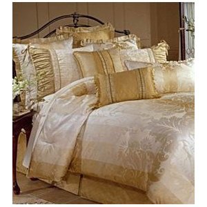- Front features golden/tan fabric with floral design and back has golden criss-crossed design