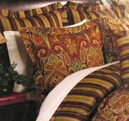 Beautiful striped European pillow sham. 100% cotton. Machine wash cold, tumble dry low. Has a ruffle around the pillow sham.