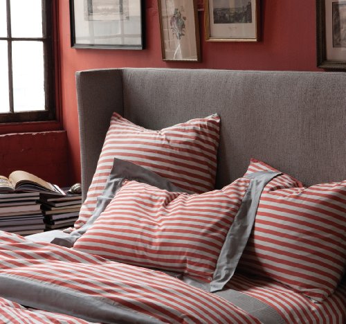 DwellStudio's Draper Stripe pattern unites graphic grandeur and simple comfort with bold horizontal stripes. Made in 300 thread count yarn dyed cotton sateen. Euro shams measure 26 by 26-inch, 3-inch flange.