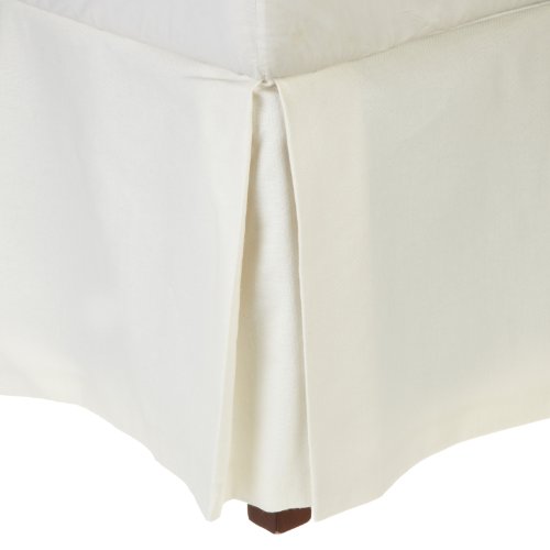 This Stylish Bedskirt Is In Cotton/Linen Blend Called Swan. It Is Lined and Tailored, with a Navy Fabric Called Madaket Stripe Horizontal Pleat inserts.