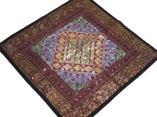 Absolutely Exquisite Vintage Rust, Maroon, Green, Orchid and Red Zari and Sequin work Sari Patchwork Indian Floor Pillow / Cushion COVER Euro Sham with vintage heavy hand embroidery! From India - Size: 26" X 26"