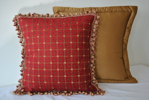 - Set includes two (2) European Pillows: One (1) 26-inch x 26-inch Shantung Gold Padded pillows with 3-inch flange and one (1) 26-inch x 26-inch Red Chenille Dots with gold onion fringes edge pillows.