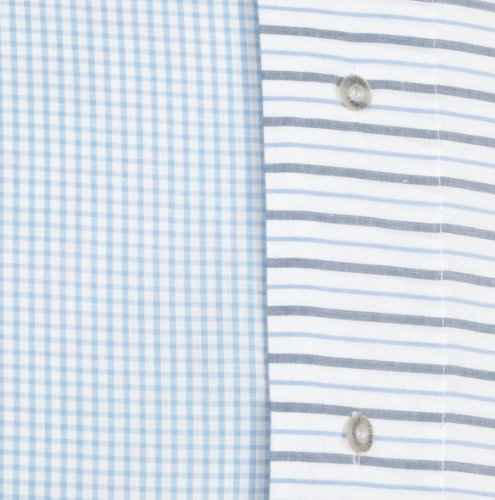 - Tattersol print with 10-Inch navy and blue oxford stripe placket