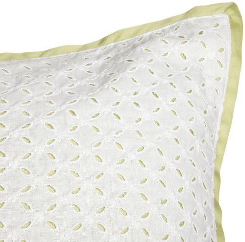 - White cotton eyelet with solid green flange