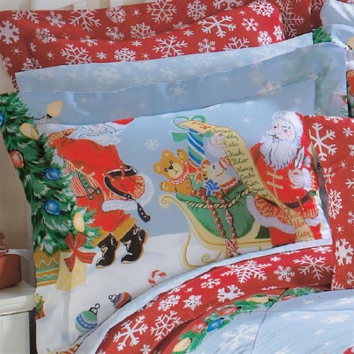 Turn your room into a holiday wonderland with our festive and bright Sets. Polyester/cotton. Machine wash. Imported. Vintage Santa. Snowflakes surround Santa with a sled full of gifts and decorating the tree. Euro Sham: Vintage Santa (26"x26"), each.