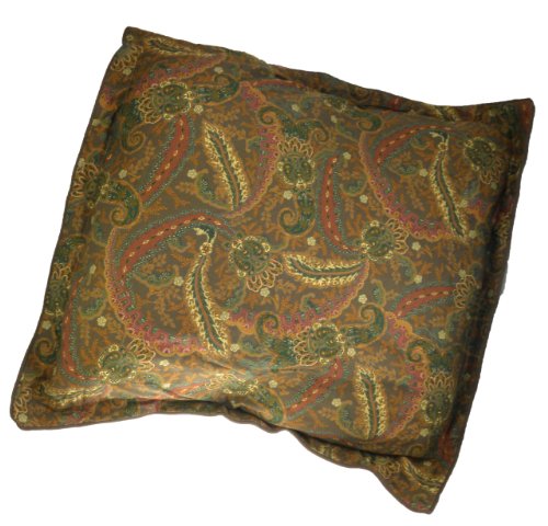 High quality designer sham for large square pillows with rich brown background and forest green and dark red paisley print.