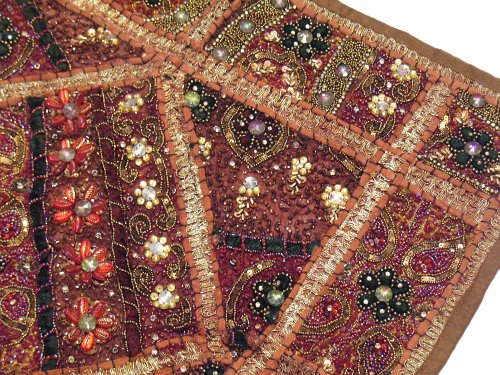 Absolutely Exquisite Antique Vintage Tribal Russet, Chocolate and deep Burgundy Indian Accent Sari Patchwork Decorative Floor Lounge Pillow / Cushion COVER CASE with intricate vintage heavy moti work, KUNDAN work & Sequin work! From India - Size: 26in x 26in.