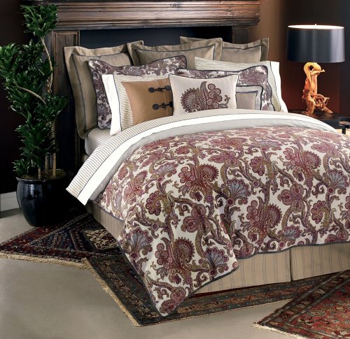Tommy Hilfiger Lyndhurst Collection features a wonderfully ornate and multihued paisley print, complemented by variegated stripes and unexpected details. The Comforter/Duvet Sets feature and multicolor paisley on yarndye herringbone sateen, include the Comforter (Duvet) and two Standard Shams (King shams included with the King size set). The European Sham features a yarndye herringbone with inset charcoal twill tape. The bedskirts are tailored, complete the ensemble with the Window Treatments and Decorative Pillows.